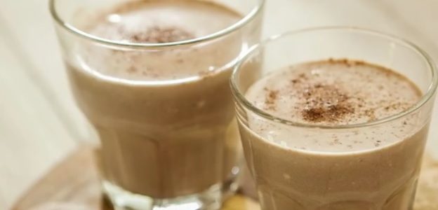3. Банан вместе с йогуртом и овсяными хлопьями с помощью блендера доводим до однородного состояния.