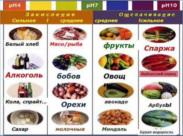 Если регулярно употреблять щелочные продукты питания из списка, указанного в первой колонке таблицы, вероятность отклонения значения рН от установленной нормы минимальна.
