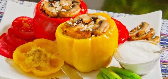 Перцы, фаршированные творогом и рисом.