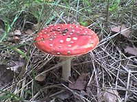 Мухомор – это гриб-представитель семейства мухоморовых. Его шляпка покрыта кожицей ярко-красного цвета с белыми крапинками. Мякоть этого гриба может быть как белой, так и пигментированной: от жёлтого до ярко-оранжевого. Вкус мякоти сладкий, запах отсутствует. Гриб относится к пластинчатым, его пластинки частые и короткие, белого или нежно-оранжевого цвета. Свойства гриба мухомор используются в народной медицине довольно часто, но сам гриб является довольно редким. Он растёт в еловых, сосновых и берёзовых лесах, чаще на окраине леса или на полянах, небольшими группами или одиноко стоящими грибами.