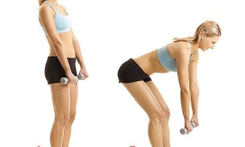 - Возьмите в две руки гантели. Не забывайте держать осанку и смотреть только вперед.