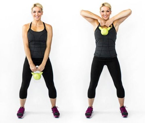 Отличным упражнением считается свинг. Это своеобразные махи гирями, которые позволяют привести в тонус и закачать мышцы спины, ягодиц и рук. На подобных тренировках сжигается огромное количество калорий.