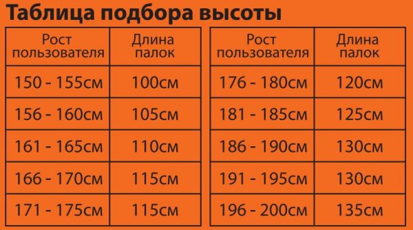 На заметку! Особое внимание необходимо уделить выбору палок для ходьбы. Для этого следует ориентироваться на собственный рост. Слишком низкие либо высокие палки отрицательно скажутся на здоровье. Новичкам лучше посоветоваться со специалистами, которые помогут правильно подобрать спортивный атрибут.
