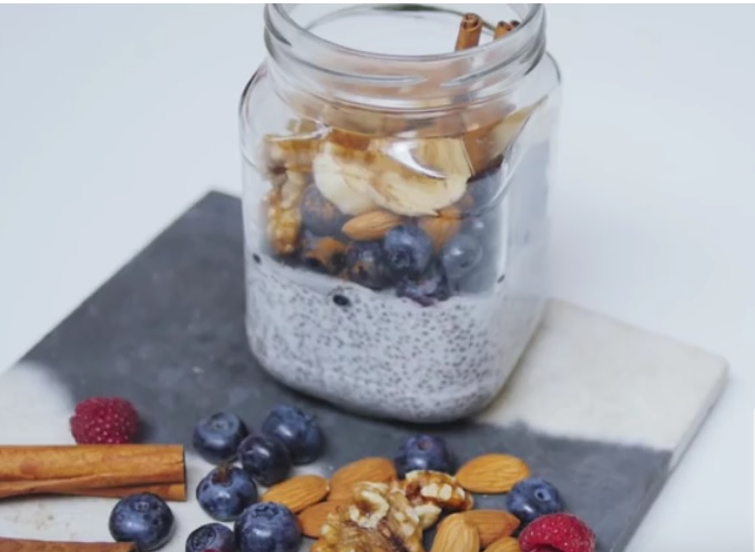 Данный завтрак готовится с вечера и подходит для тех, у кого нет с утра ни одной лишней минуты. Стоит отметить, что семена чиа являются настоящим суперфудом, так как содержат много Омега-3 жирных кислот и кальция.