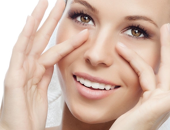 - глаза – разместить кончики указательных пальцев в области переносицы и начать двигаться вдоль нижних век, доходя до висков; неспешно помассировать участок над глазами, установив кончики пальцев на внешний край бровей, совершать круговые движения и двигаться по направлению к переносице;