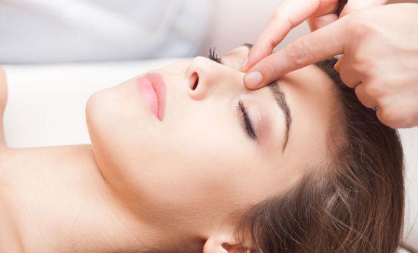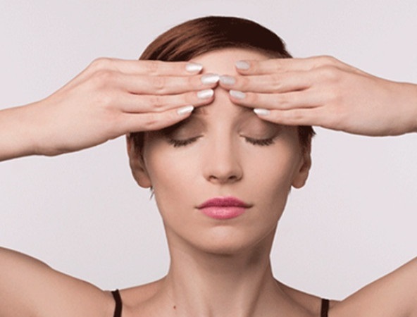 - лоб – сомкнуть подушечки пальцев на обеих руках, установить их в середине лба, совершить около 6 плавных поглаживаний, направляясь к вискам;
