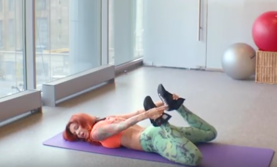 На выдохе поднимитесь, стараясь выпрямить ноги и подтянуть плечи к коленям. Три счета держитесь в таком положении, а на четвертый – опускайтесь.