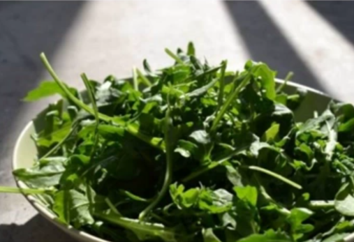 Промойте и обсушите рукколу с латуком. Переложите зелень в емкость.