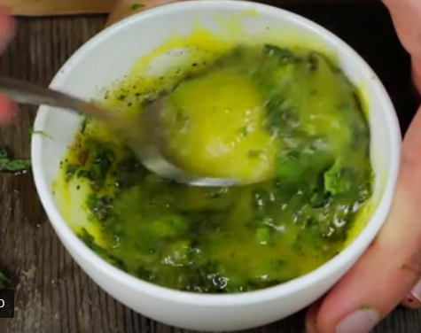 Для приготовления заправки берем манго и делаем из него пюре. Затем добавляем оливковое масло, измельченный базилик для придания пряности и измельченную мяту для придания свежести заправке. В завершении посыпаем перцем и солью.