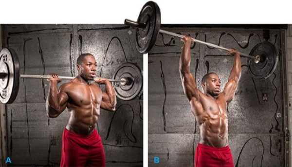 Можно получить максимум эффективности и не навредить своему здоровью, делая армейский жим, если техника выполнения будет правильной. В классическом исполнении упражнение делают стоя. Но перед тем, как приступить к нему, необходимо разогреть мышцы путем выполнения небольшой разминки.