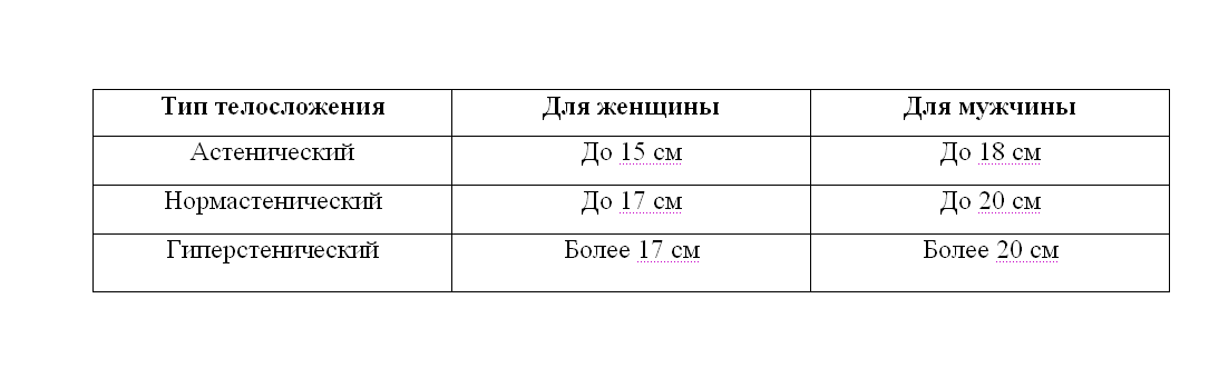 3. При гиперстеническом типе телосложения к полученному результату нужно прибавить 10%. А при астеническом типе телосложения отнять те же 10%.