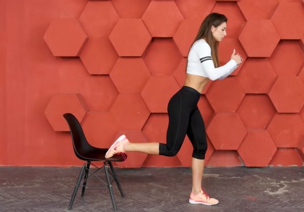 Стопу одной ноги поставьте на возвышение, а другая нога должна стоять чуть впереди и выполнять опорную функцию.