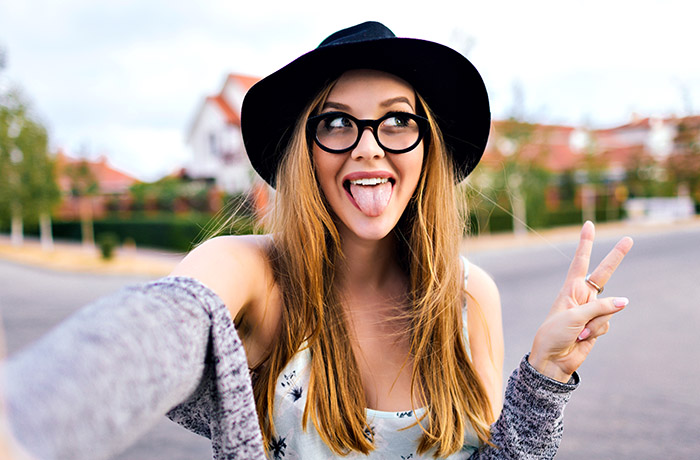 - Не щурьте глаза, иначе их будет не заметно. Если фотографируетесь при ярком свете, стоит надеть солнцезащитные очки.